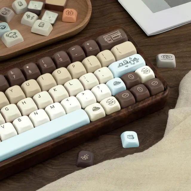 FOA Profil Keycaps: The rounded edges of the keycaps of this mechanical keyboard keycaps reduce fingertip pressure while increasing comfort while typing and gaming. The ergonomic design allows your fingers to fit naturally on the surface of the keycaps, keeping them comfortable even after prolonged use3. Dye Sublimation KeycapsThis keycap uses dye sublimation technology, the color has seeped into the keycaps, long service life, no fading, you can feel free to use and appreciate the design on the keycaps. Make your ordinary keyboard different and full of texture4. Widely CompatibilityThis cute keyboard keycap set has 130 keys. The keycaps 60% 75% 100% fit for full size keyboard, 61/68/84/87/100/104/108 keys are suitable5. What You Get1x130 thick PBT Keycap set (key puller included). Its only keycaps, no keyboard included