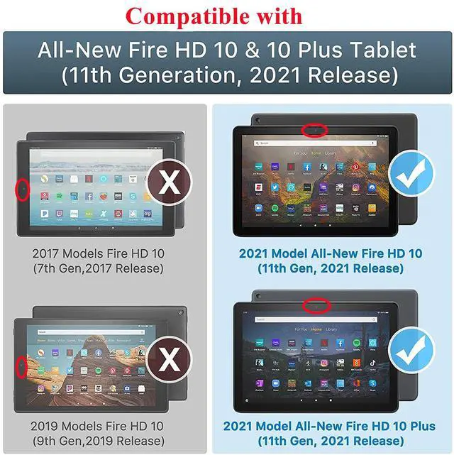 Release)Compatibility: Compatible with Fire HD 10 Tablet 13th/11th Generation, 2023/2021 ModelCompatible with Fire HD 10 Plus Tablet 13th/11th Generation, 2023/2021 ModelPlease note that this case ONLY fits the above models and will NOT be compatible with other tablets not mentioned in this listing. Please go to "Settings" and tap the Device Options entry. Then you can find your Tablet's Model Name (and generation).