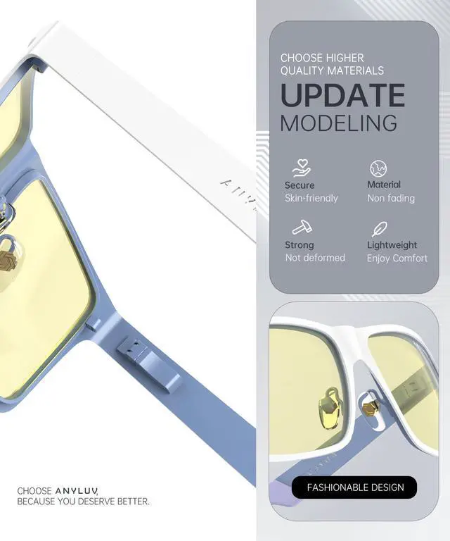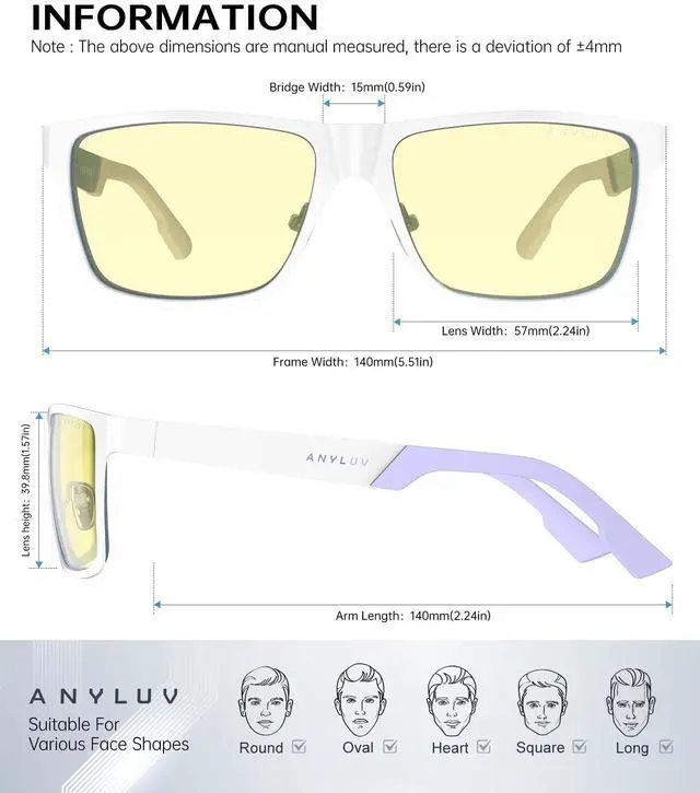 ^^ Stylish Blue Glasses: These computer glasses combine modern and classic design elements for any occasion. A low-key yet elegant design style can better highlight your temperament. The computer glasses feature square slim-fit frames and an ANYLUV logo decorative temple design, presenting a refined and fashionable style. Whether you are at work or in your daily life, men's anti-blue light glasses can add a touch of fashion to your appearance and showcase your unique charm ^^ Brand Customer Service & Gift Package: This type of blue ray glasses come with an exquisite triangular folding box, which will be a great gift for your family and friends! ANYLUV attaches great importance to product quality and customer satisfaction. Each ANYLUV customer can enjoy after-sale brand service for our blue screen glasses.