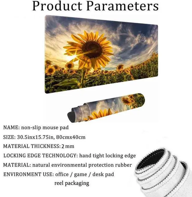 Desk Mat,Large Gaming Mouse Pads for Desk, Sunset and Sunflowers Non-Slip Rubber Base Extended Mousepad,XXL Keyboard Mouse Mat,Computer Keyboard Desk Pad with Stitched Edges,31.5X15.75inch