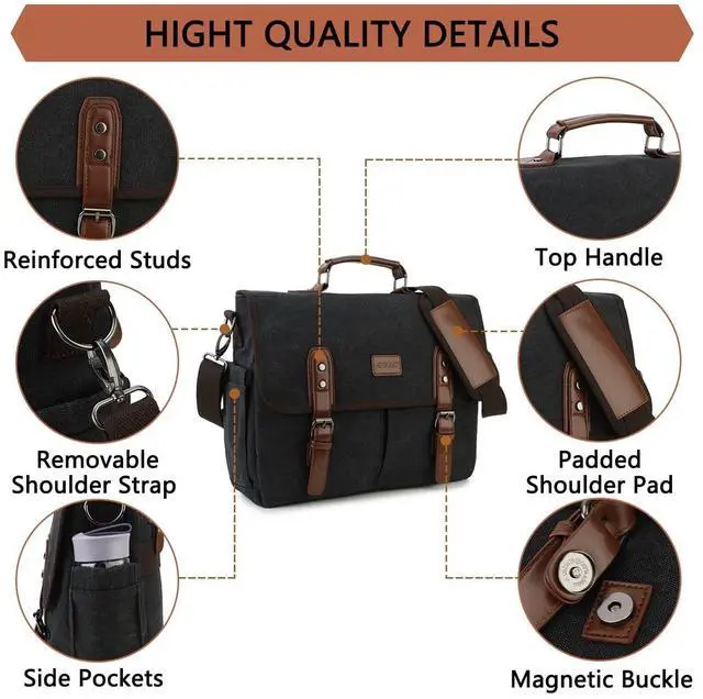 DURABLE & WATER RESISTANT: Men messenger bag is made of superior pu leather and water resistant canvas which can well protect your belongings. Laptop shoulder bag is designed with 2 strong magnetic buckles on the flap which is secure for all your valuables. It's a classic satchel bags that perfect for college, travel, business and so on.