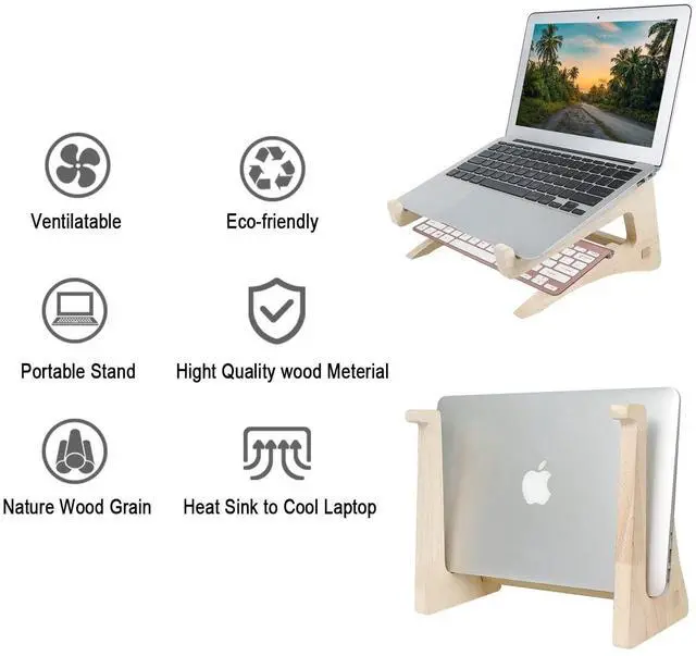 ^^ Keep Laptop Cool: the open wood design provides good ventilation and airflow to prevent your laptop from overheating. It folds flat if you need to store it, create extra space on your desk and keep your desk clean and organized. ^^ Laptop Stand Easy to put together, lightweight, easily portable, stable. ^^ This laptop stand can helpful to relieve neck and shoulder pain by elevating your laptop to eye level.