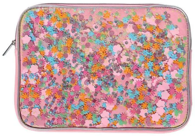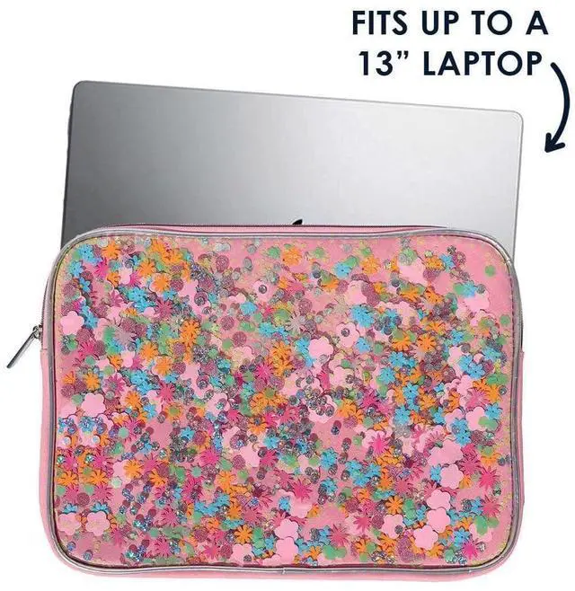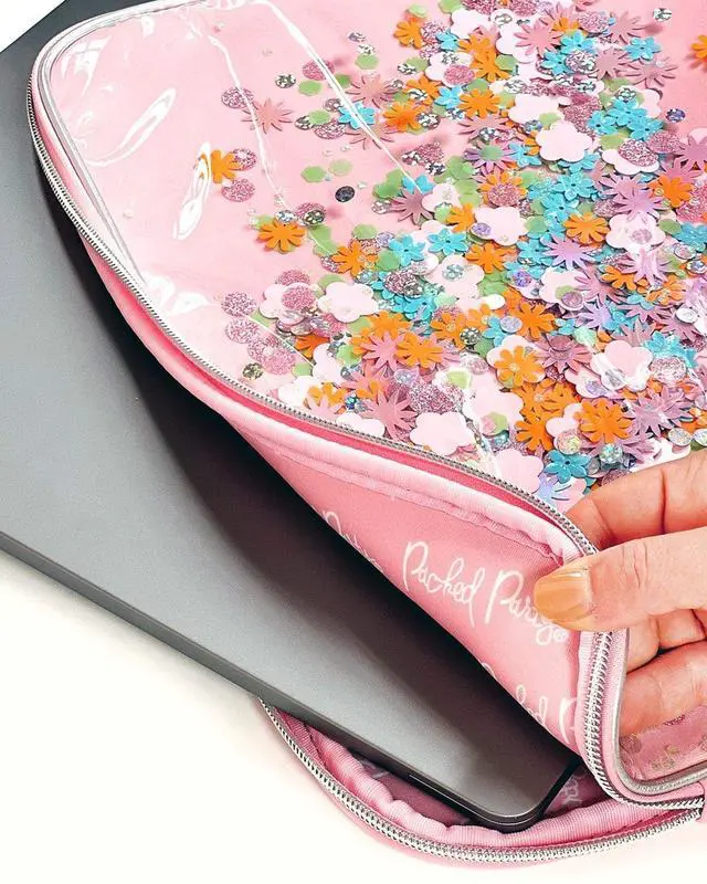 Packed Party Pink Confetti Filled Laptop Case Sleeve; Women and Girls Fashion Computer Sleeve; Trendy Look for Ladies at School, Work, Home and Travel; Pink