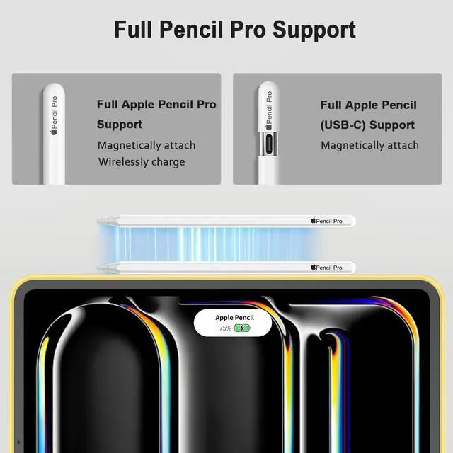 [Supports Pencil Pro and Pencil (USB-C)] This iPad Pro case fully supports Pencil Pro and Pencil (USB-C) with a recessed side groove for magnetic charging and a magnetic clasp to keep your Pencil secure