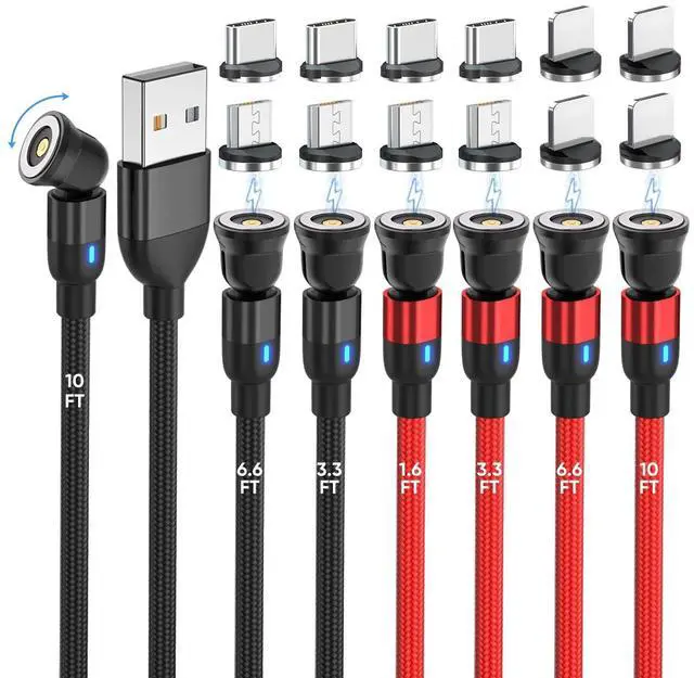 Design: The upgrade magnetic charging cable allows magnet tip to rotate 360 and charging head to bend 180, this convenient design allow you to find the right angle for every charging occasion. Precisely completes the magnetic connection, which improves charging efficiency and super convenient. ^^ 3-in-1