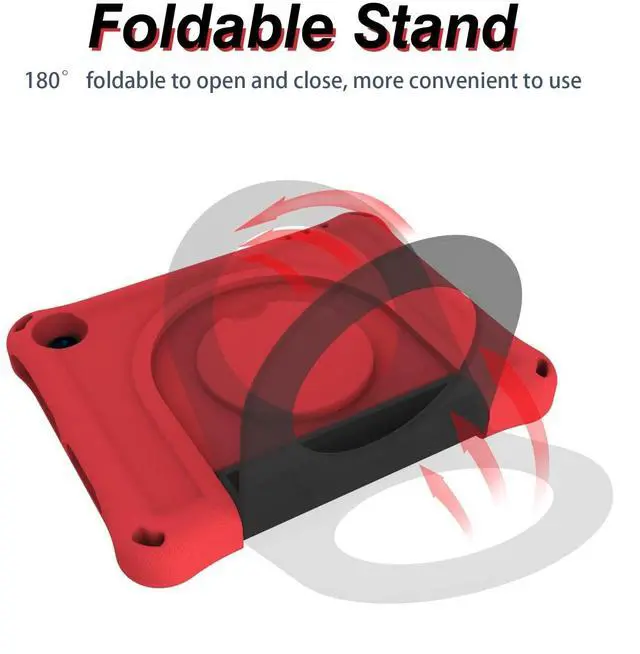 ^^ Material: Made with durable heavy duty EVA foam. Light weight, wear-resistant, shockproof, environmentally friendly, non-toxic, non-slip and strong grip. Provides double-layer 360-degree body protection while maintaining lightness. The thicker four corners protect the tablet and no longer worry about your baby accidentally falling off the tablet. ^^ Large round brackets and handles. A foldable stand can be used to adjust the angle as you watch videos and type. The round foldable handle makes it easy for children to grab and carry in school or at home. At the same time it is also fit for hand strap, passing the arm through the round ring for easy display and sharing without worrying about it slipping from the hand. ^^ Full Body cover protector. The bezel design is 3 mm higher than the screen. Double-layer thick silicone in the corner prevents falls and other impacts. It will fix the tablet in the EVA foam, and the huge impact will not cause the iPad to fall out. It doesn't have a plastic sheet to cover the screen, allowing you to enjoy smooth and fast screen touch.