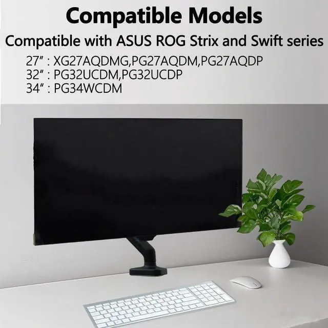 ^^ Universal VESA Support: Compatible with ASUS ROG Swift and Swift Monitor VESA Mount Adapter is the ideal accessory for strix and Swift users. It solves the mounting problem of monitors without VESA holes and is fully compatible with 75x75mm or 100x100mm VESA Various robotic arms Say goodbye to limited mounting options! ^^