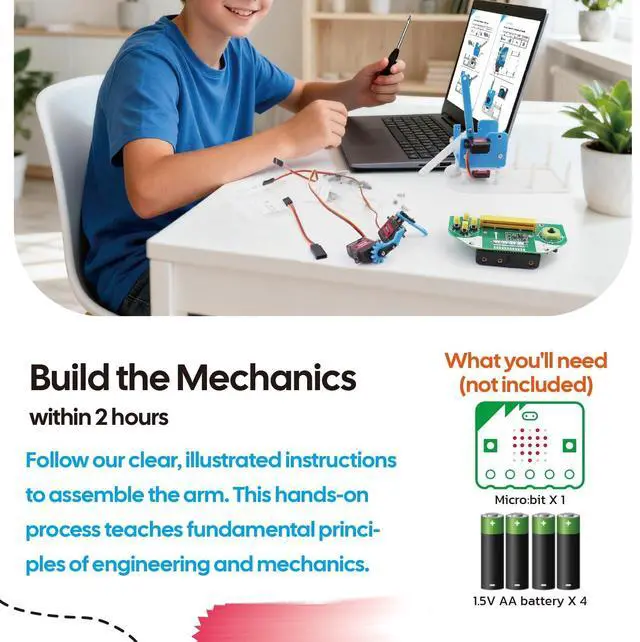 SIYEENOVE Micro:bit Programmable Robotic Arm Kit with Joystick Controller for STEM Education ^^ Compatible with MakeCode ^^ Ideal for K-12 Students, microbit v2 and AA Batteries Not Included