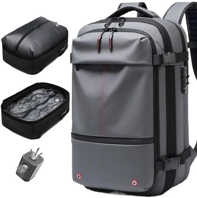 DescriptionOur vacuum backpack with portable vacuum pump presents an innovative solution to your travel needs. Designed with vacuum compression, it offers expansive storage, smart organization, secure storage, and all-weather durability. The Vacpack Backpack is perfect for business trips, weekend getaways or school. It has ample storage space for your 17" laptop, phone, game console, tablet, headphones, wireless keyboard, mouse, notebook, umbrella and water bottle. Experience a more efficient and stress-free travel with your essentials well-organized and secure.