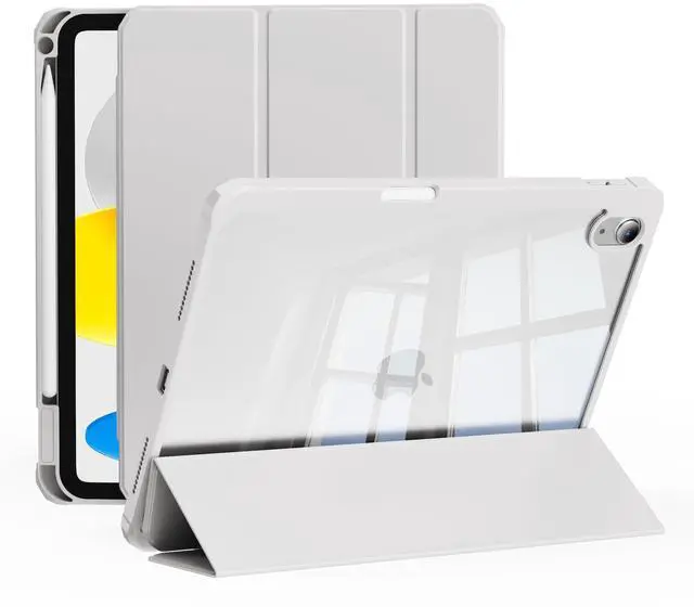 ZOPSGYU Case for iPad (A16) 11th/10th Generation 11/10.9 Inch 2025/2022 with Pencil Holder - Transparent Backshell with Soft TPU Shockproof Frame, Support Auto Wake/Sleep & Touch ID, Gray