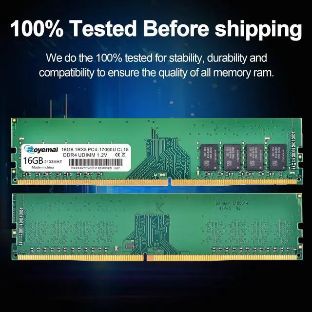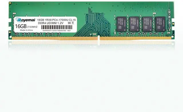 DDR4 17000U PC4 2133 16GB UDIMM, DDR4-2133MHz PC4-17000 CL15 1Rx8 1.2V Non-ECC 288 Pin Desktop Memory Module RamPlease Kindly Note: In case the RAM cannot fit your computer, please ensure the parameters before you purchase, such as the RAM model, RAM slot and maximum memory of your computer. High StabilityHigh-quality originals, strict process. All chips from large brands, through strict testing and screening testing. Advanced electroplating process is applied on the connecting finger will improve corrosion resistance and electrical conductivity. After Long-time burn in test and temperature tolerance test aiming at major system platform, it approves that ROYEMAI memory owns high stability and performance. Faster and SmootherROYEMAI RAM is designed to help your system run faster and smoother, one of the easiest ways to improve your system's performance. Load programs faster, increase responsiveness, run data-intensive applications easily and increase your desktop's multitasking capabilities. After install larger memory, computer will respond noticeably faster, particularly with lots of windows open. High CompatibilityTo make sure itll be compatible with Intel, AMD System well, ROYEMAI RAM has been through compatibility testing with all popular brands of motherboards. Test results show that memory is able to offer superior performance and high stability required during long time operation for any brand computer.