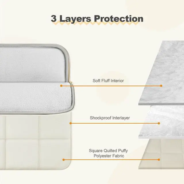 ^^ Protection: Features a polyester foam padding layer and fluffy fleece fabric lining. Protect your laptop from bump, shock and accidental scratches.