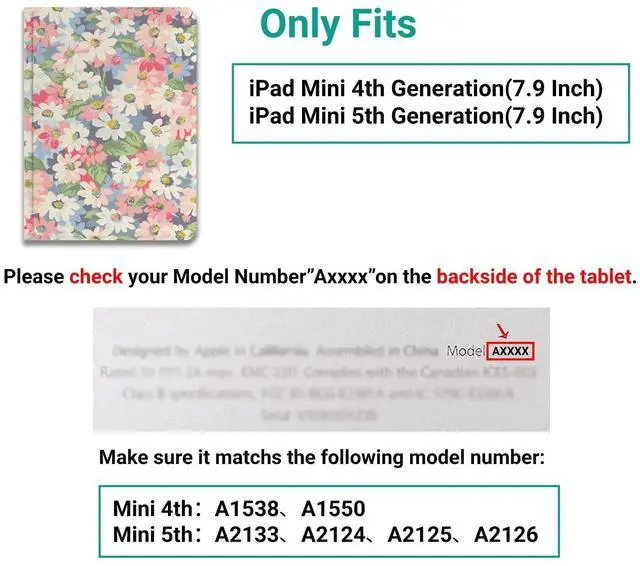 • Perfect Fit: This iPad case is perfect fit iPad Mini 4th/ 5th Generation 7.9 Inch. Model number: A2133/ A2124/ A2126/ A2125/ A1538/ A1550. Please check it before you make a purchase