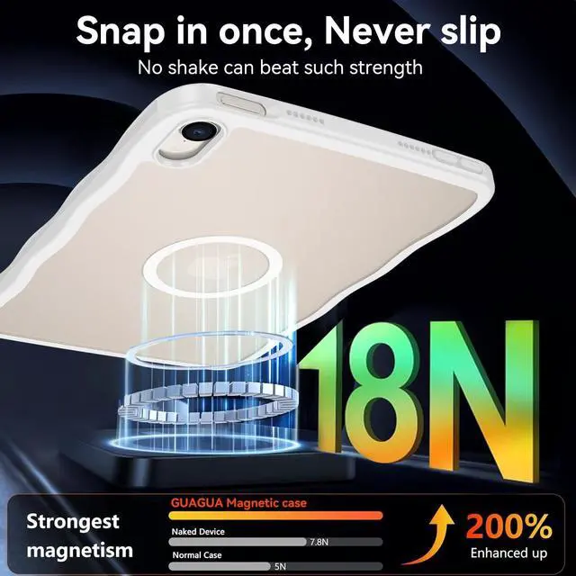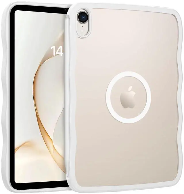 GUAGUA for iPad mini 7 A17 Pro Case Magnetic, iPad mini 7th/6th Generation Cases(2024/2021) Wave Frame Anti-Slip with Pencil Holder Slim Light Drop-Proof Case for iPad mini 7th/6th 8.3 '', WhiteFeatures: Easy to All the