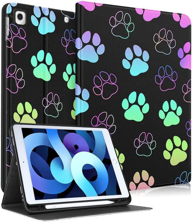Uppuppy for iPad 9th/8th/7th Generation Case 10.2 Inch Girls Cute Kids Women Folio Smart Cover with Pencil Holder Paw Print Cool Design Funny Kawaii Teens Cases for iPad 7/8/9 Gen A2602 A2270 A2197