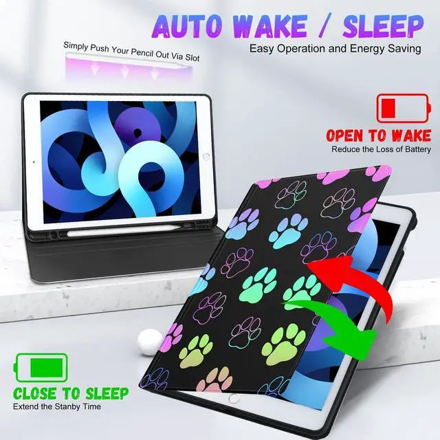 ^^ Auto Sleep/Wake: Built-in magnetic strip, this for ipad cover 9th generation, for 7th generation ipad case, for 8th generation ipad case with the smart funtion of auto sleep/wake, no wasting the power energy and extend your iPad standby time.