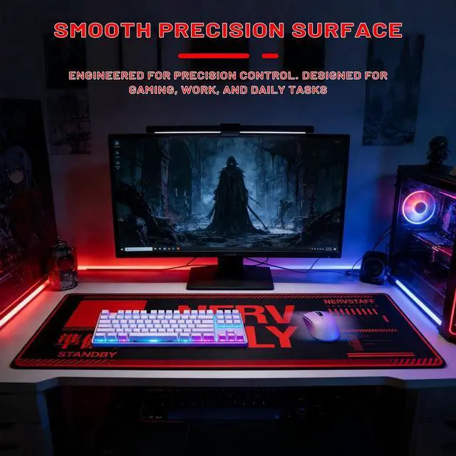 Step into the world of Neon Genesis Evangelion with this NERV-themed mouse pad. Featuring the bold "NERV ONLY" design in striking red and black, it captures the animes industrial sci-fi essence. The non-slip rubber base ensures the mouse pad stays firmly in place, while the reinforced stitched edges enhance durability for long-term use. Its smooth surface guarantees precise mouse control, making it a must-have for EVA fans, gamers, and professionals alike.