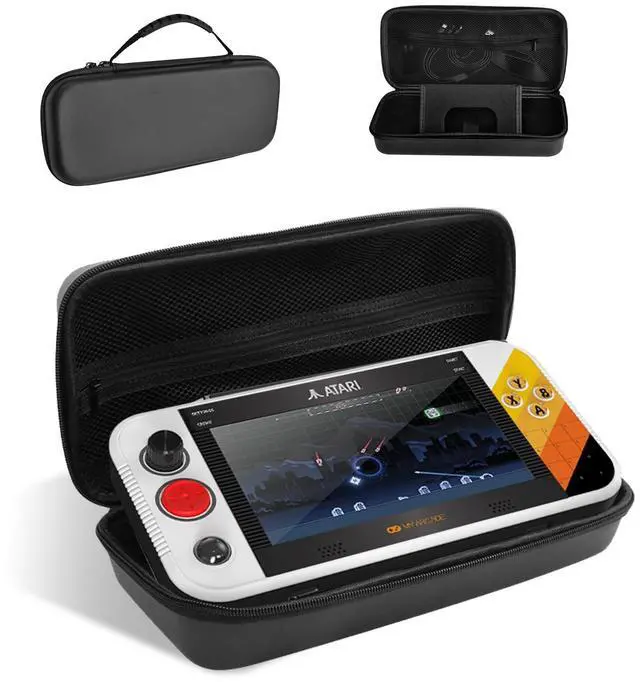 Compatible ModelsDesigned for My Arcade Atari Gamestation Go Retro Video Games Console, ensuring a perfect fit for your device and accessories. ^^ Shockproof ProtectionDurable EVA hard shell and soft interior lining protect your console from bumps, impacts, and scratches during transport. ^^ Built-in StandIncludes a convenient stand feature, allowing you to set your console down for easy viewing or gaming on the go. ^^ Convenient Design Top mesh pocket provides organized storage for cables, chargers, and accessories, keeping everything neatly in place. ^^ Portable & LightweightThe lightweight design of the travel case and nylon handle make it easy to carry, perfect for travel, storage, or daily commuting.