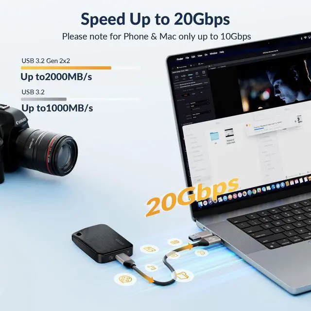 Wide Compatibility: i20 external hard drive comes with a 2-in-1 USB C to USB A/C data cable, making it compatible with desktop, laptop, smartphone, camera, PS5, Xbox. The SSD portable supports various operating systems such as Windows, Linux, Android, iOS.