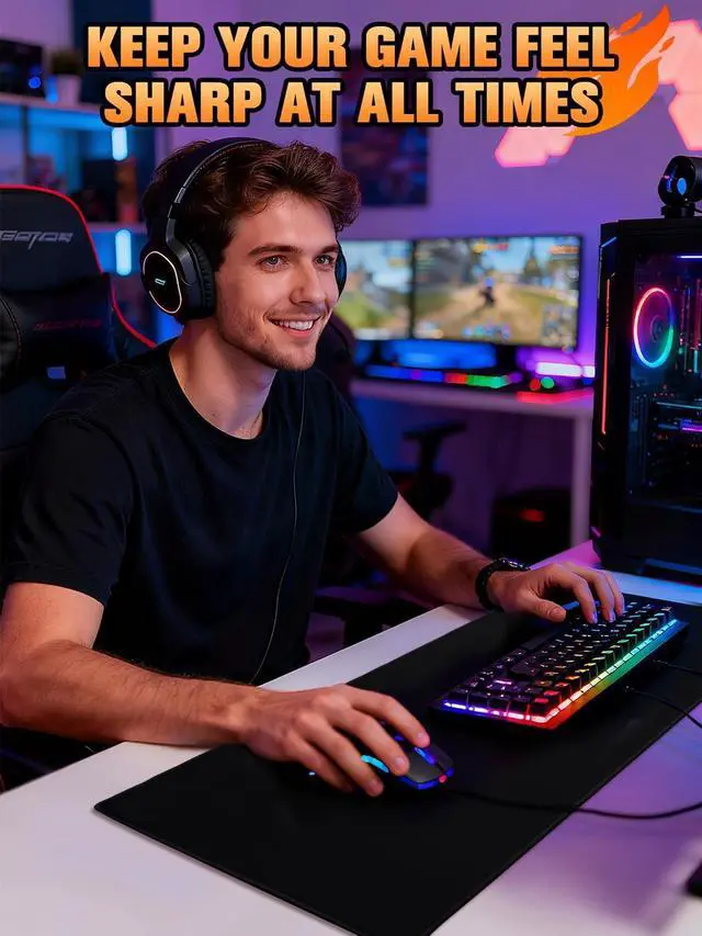 5-Level Intelligent Temperature Control: This black heated mouse pad offers 5 temperature settings: 86 (30), 95 (35), 104 (40), 113 (45), and 122 (50). Adjust the heat to your personal preference and keep your hands warm and comfortable. The 31.5" x 13" size provides ample space for both keyboard and mouse, ensuring a smooth and comfortable gaming and office experience