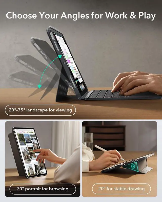 Magnetic Detachable Design: a secure magnetic connection lets you attach the keyboard for typing or remove it for a streamlined tablet experienceperfect for reading, watching, or drawing; instantly transform your iPad into a laptop and back again ^^ Fully