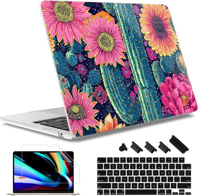 May Chen for MacBook Air 13.6 Inch Case 2025/2024/2023/2022 Release (Model A2681 A3113 A3240, M2 M3 M4 Chip) Hard Shell Laptop Cover with Keyboard Cover & Screen ProtectorSunflowers Cactus