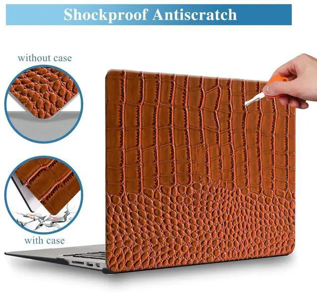 Features: Made of PU leather and PC materials, protecting your laptop from scratches and and everyday damage. This gorgeous crocodile-embossed macbook case has a vibrant and shiny finish that creates a striking visual effect. The rich, textured look of crocodile/alligator skin adds a tactile dimension to your device. Thoughtfully designed with a perfectly positioned cut-out for the logo. Snap-on design, easy to put on and remove. Fully access to all ports and buttons. The additional silicone keyboard skin protecting your keys from dust, spills and crumbs. Bottom vents help keep your laptop cool and four non-slip rubber pads keep your laptop in place. Snug fit, ultra-thin and lightweight, it won't add any noticeable weight or bulk to your laptop. Each piece of faux crocodile leather is crafted with its own unique natural grain. True luxury should be as unique as you are!