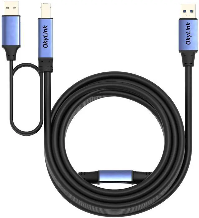 Short cables (5ft & 10ft) are premium shielded for ultra-fast, low-latency performance. Longer cables (15ft and above) are active with built-in signal booster, ensuring reliable, lossless data transmission across extended distances. ^^ 3. Active Signal Booster + Optional Power Supply All lengths 15ft and above integrate a signal amplifier, preventing attenuation and errors during long-distance use. Includes an optional external power port to supply extra power when needed avoiding connection issues caused by insufficient USB bus power. ^^ 4. Nickel-Plated Connectors + Oxygen-Free Copper Equipped with nickel-plated connectors for corrosion resistance and stable contact.
