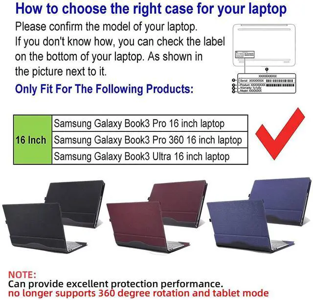 X D X H): 13.99" x 9.86" x 0.49". This case is compatible with for Samsung Galaxy Book3/4 Pro 16 inch laptop, Samsung Galaxy Book3/4/5 Pro 360 16 inch laptop, Samsung Galaxy Book3/4 Ultra 16 inch laptop (Please check your laptop model!!! ) ^^