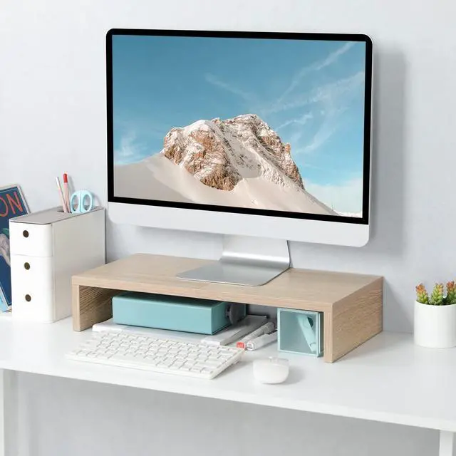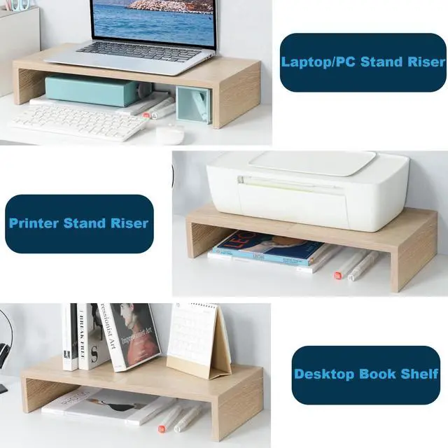 Great Basic Shelf Multi-function Stand can be match Laptops less than 20 inch & Most of screens less than 50 inch, it provides storage area for keyboard notebook and anything when not in use. You can use it according to your creativity. ^^ Ergonomic Design Helps reduce eye, neck, and back strain related to computer work and provides you a healthier working environment. ^^ Better SupportStand can hold 80Ibs, there is a thick steel pipe stabilizing support structure on the back avoid shaking. TEAMIX monitor riser made of high quality MDF wood board, strong and sturdy.