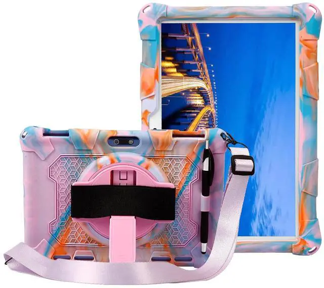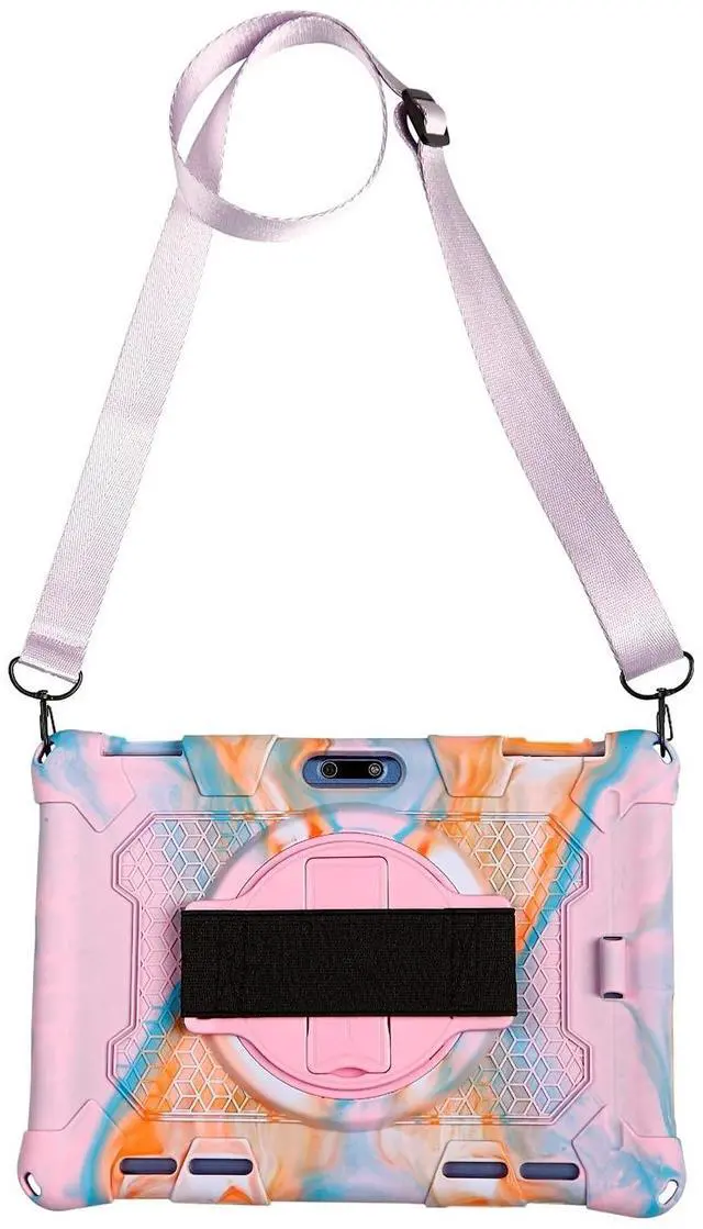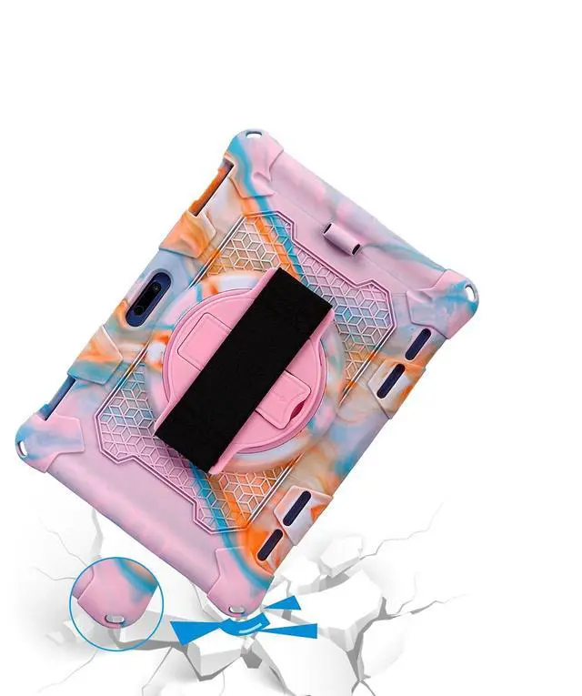 Hand Strap: The comfortable hand strap makes your tablet attached to your hand firmly, easy to use and protect your tablet from falling. 360-degree rotation built-in adjustable swivel stand allows more viewing versatility, and place your tablet at any angles to enjoy typing or watching ^^
