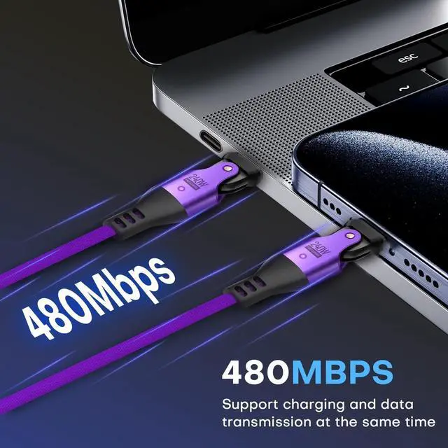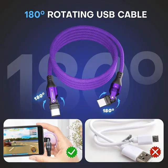 Fast Charging & SyncSupports high-speed charging up to 240W when used with a compatible charger. Max 5A Fast Charge, Transfer speed can reach 40~60MB/S (480Mbps), accelerates the charging speed by delivering 5V/3A safe charging power. ^^ 180 Rotation designSay goodbye tradition, a