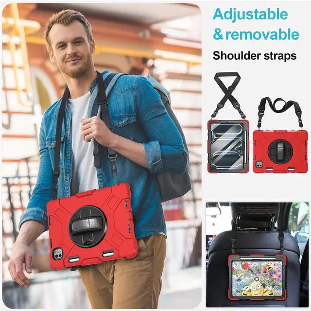 DETACHABLE SHOULDER STRAP: The adjustable hand strap offers easily grip and comfortable hold, it is a must feature when you show your iPad to others. The detachable and adjustable shoulder strap can help you carry your iPad more securely during hiking, traveling other outdoor activities. That can also be used to attach your ipad to the car seat ^^ BUILT-IN APPLE PENCIL HOLDER + PRECISE CUTOUTS +