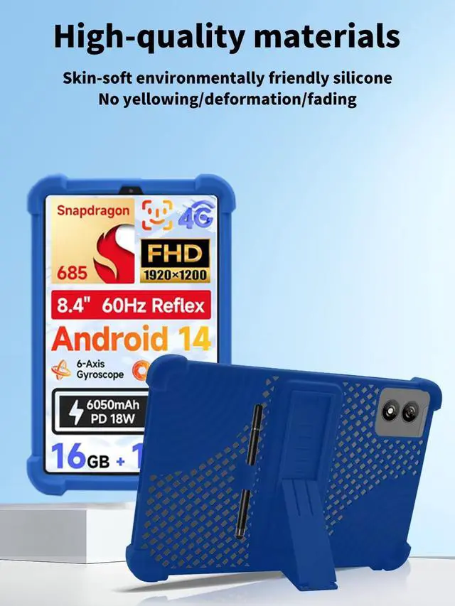 Case for BNCF Bpad Mini Tablet 8.4inch,NOUKAJU Tablet Protection Case(with Pen),Adjustable Bracket,Soft Silicone,Silicone Protection Cover for BNCF Bpad Mini(Blue)