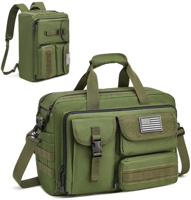 3-in-1 Design: With top handles, removable adjustable shoulder strap, and hidden backpack straps, this tactical messenger bag can be used as a handbag, shoulder bag, or briefcase backpack, offering multiple comfortable carrying options