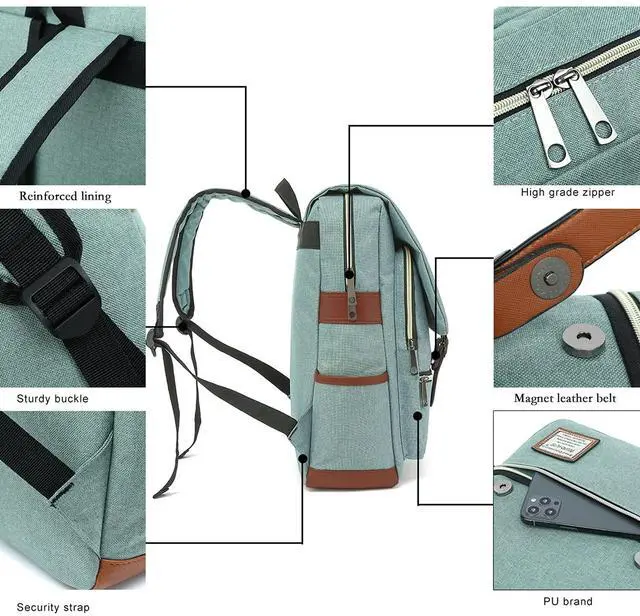 ^^ ROOMY INNOVATION DEPARTMENT: Total 6 compartments, 1 main pocket with laptop sleeve large fits up to 15.6" laptop, clothes, books, purse, tablet and other daily needs, 2 front zip pockets under the portable fashionable flap handy access smart phone, earphone, magazine, tablet and other carry-on stuff, one mesh pouch inside for power bank which can charge your phone on the go, one bottle pocket each side for drink bottle and umbrella.