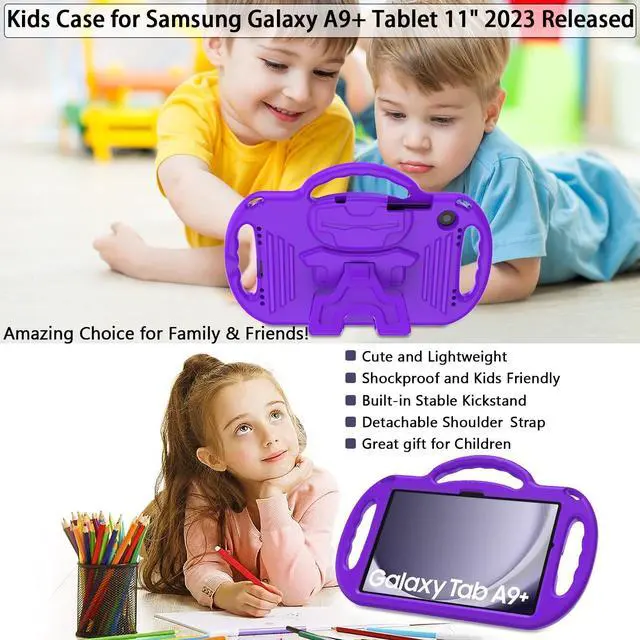Perfect CompatibilityONLY for 2023 Release Samsung Galaxy Tab A9 Plus 11 Inch (SM-X210/ X216/ X218). NOT fit for ANY other models. (Note - Be sure to check your model number in the tablet settings before purchase). ^^ Cute DesignGalaxy tab a9 plus case for kids, designed with unique robot kickstand, prop up the stand anytime needed, start hands-free viewing in a comfy angle. Plus come in a series of enjoyable vibrant colors, fun and functional, amazing gift for children. ^^ Shoulder Strap & Built-in HandlesGalaxy tab a9 plus case comes with detachable shoulder strap and handles-all-around, easy to carry, travel-ready, super convenient while on the go.