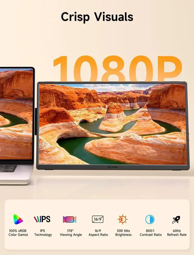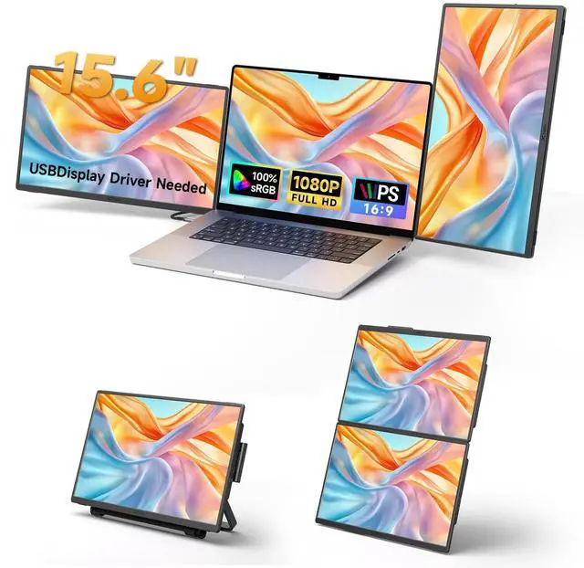 Practical WorkstationEach screen extender is detachable. You can place them horizontally, vertically, or stacked; combine them freely according to your needs. They can help increase your productivity by enabling you to see more at one time rather than having to flip back and forth between open windows. You can easily handle multiple tasks at the same time without feeling cramped. ^^ Screen Extender 15.6 InchEnjoy vibrant color with 100%sRGB, 1080P resolution. 300 nits brightness, 178 viewing angle, IPS technology, 60hz refresh rate making videos and presentations look clean, brightness is uniform and the viewing angle is wide.
