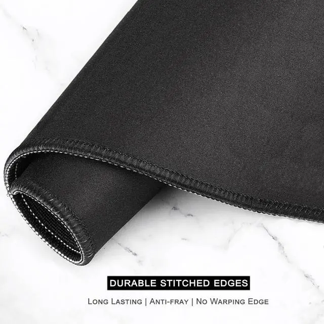 ^^ Non-slip Rubber Base: The soft and thick rubber backing with dense non-skid texture, it keeps your desk mat firmly in place. This huge mouse mat remains uniformly flat even over imperfect surfaces. Just immerse into your work or games without worrying about the annoying mouse pad movement.