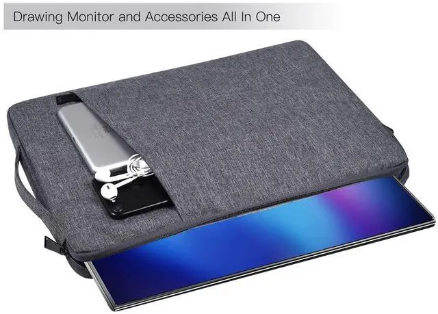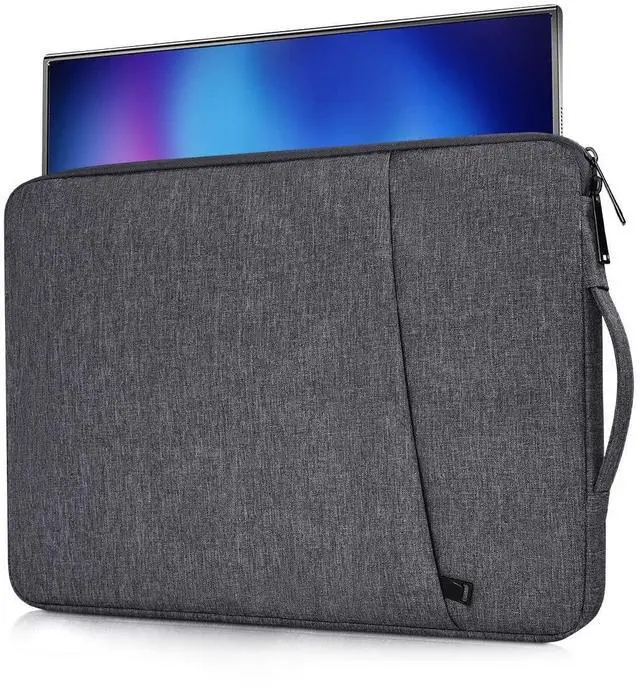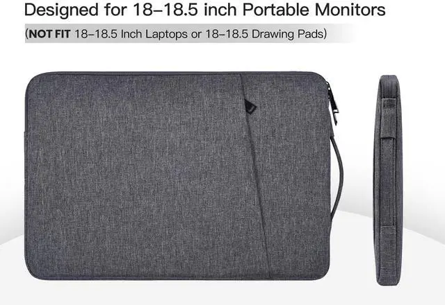 ASIN: B0FDG7VGC2. ) ^^ Compatible with Most 18.5 Inch Portable MonitorsThe portable monitor case Compatible with Most Large 18.5" Portable Display Monitors. ^^ Water Resistant & Slim LightweightThe 18.5 inch portable monitor case is made of high-quality waterproof Canvas fabric, which obstructs water and vapor effectively. Don't worry about your monitor and accessories splashing water or rain. Super slim and lightweight, it can easily be transported inside another bag, backpack, or briefcase. ^^ Extra Pocket & Smoothly ZipperExtra pocket in front provides enough space to keep pens, charging cables organized, and other accessories. The zipper glides smoothly and convenient access to your monitors. ^^ Shockproof Soft Lining & Side HandleEspecially soft and anti-static, the portable monitor case of the soft lining can effectively absorb impacts and reduce damages caused by accidental bumping & scratches. The side handle helps you carry it easily when you want it as a handbag.