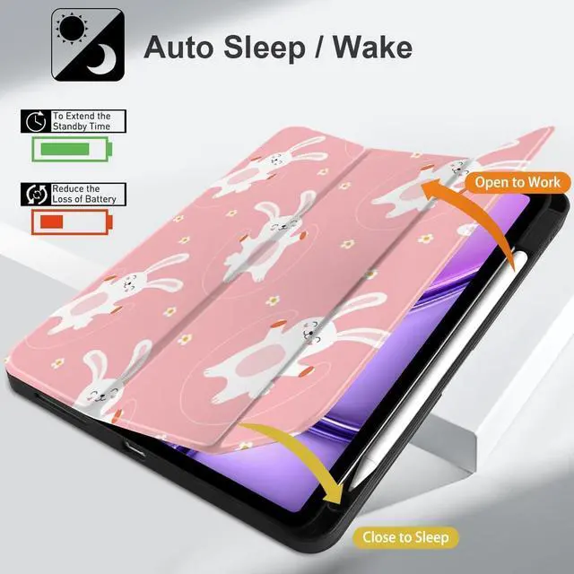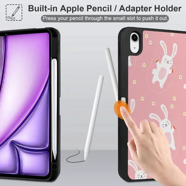 MEEgoodo Case for iPad Air 11 inch (M3) 2025/ (M2) 2024, Cover for iPad Air 5th Generation/iPad Air 4th Generation 10.9 inch 2022 2020, Tablet Cases with Pencil Holder, Bunnies Jumping Rope