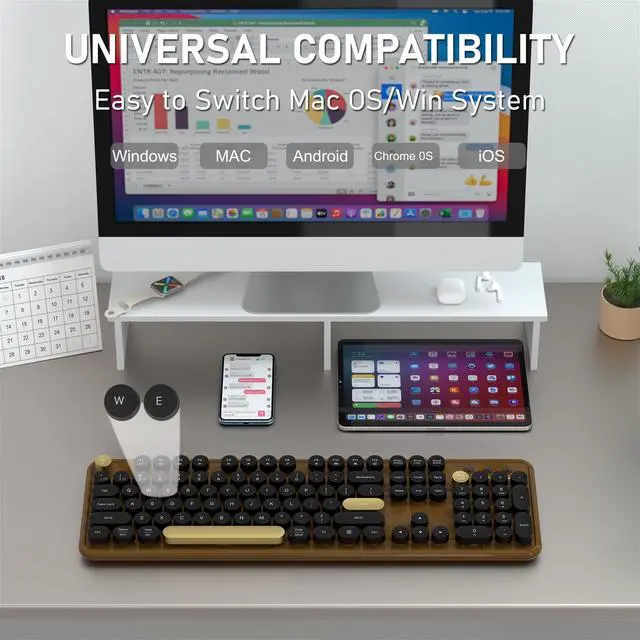 COLORFUL BLUETOOTH KEYBOARD: Typewriter retro round keycaps and clicking sounds make you enjoy typing. The 2024 new colors change the classic black impression of Bluetooth keyboards and add a different look to your desk ^^