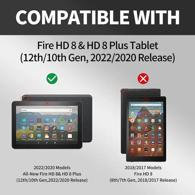 Perfect Compatibility-- Designed exclusively for Kindle Fire HD 8 & Fire HD 8 Plus Tablet (12th Generation 2022 & 10th Generation 2020 Release) for a perfect fit. Convenient Features-- Stable & Sturdy & Adjustable Stand Specifically for All-New Kindle Fire HD 8 2022 anti-skid design for typing & viewing videos with multi-angle, and a Convenient Hand Strap for single-handed use. Smart Features-- Includes an auto wake/sleep function that wakes your device when opened and puts it to sleep when closed, Plus, all controls and features (cameras, speakers, ports, and buttons) are easy to access without removing the case.
