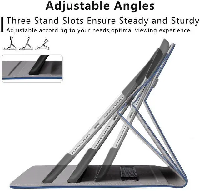 ^^ [Multiple Viewing Angles]: The iPad case provides multiple slots which able to set up multiple horizontal stand angles for watching movies or typing.