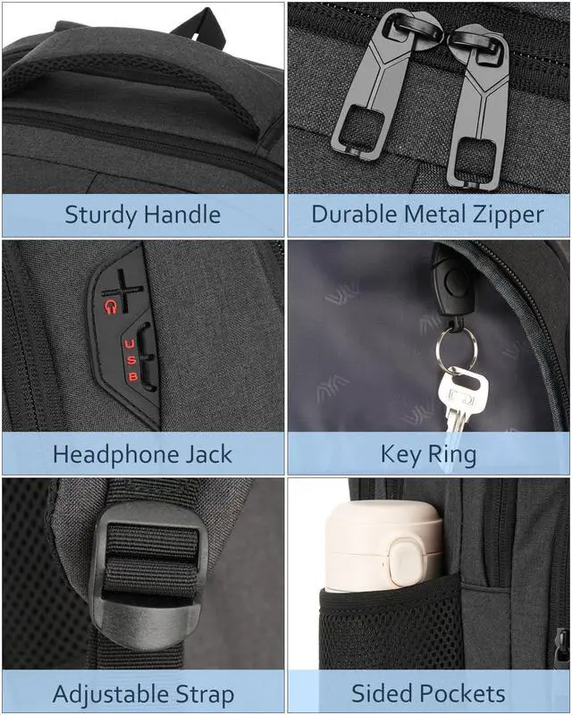 USB & HEADSET PORT: With built in USB charger outside and built in charging cable inside, this USB back pack offers you a more convenient way to charge your phone while walking. And the headphone interface frees your hands when enjoying music.
