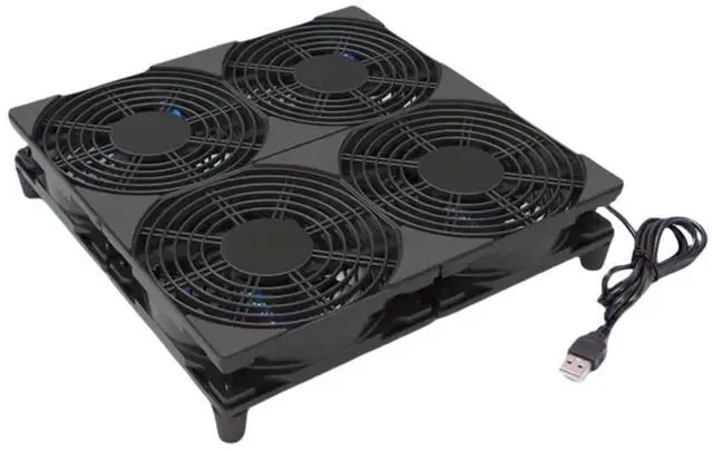 Rubber Feet: 120mm x 4 usb large router fan are equipped with 2cm 0.79 inch non-slip and shockproof rubber feet, allowed fan can be placed flat with no slip and leave more space for airflow intake to cool down the device soon. ^^ Plug and Play, no assembly needed! No power supply included!