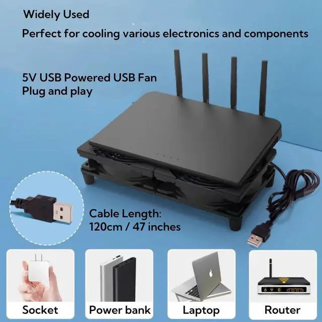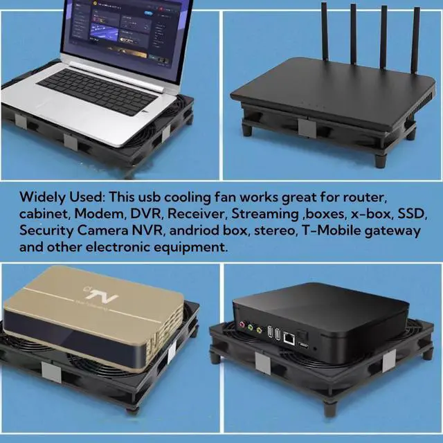 Widely Used: This usb cooling fan works great for router, Mac Mini, PlayStation, cabinet, Modem, DVR, Receiver, Streaming, boxes, x-box, SSD, Security Camera NVR, andriod box, stereo, T-Mobile gateway and other electronic equipment.