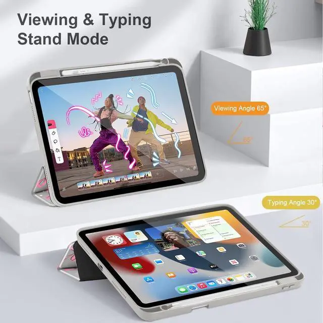 • Tri-Fold Standing & Auto Sleep/Wake: The Tri-Fold front provides you two standing positions for viewing or typing needs; Front Cover can automatically puts your iPad Air sleep/wake when the lid turn on/off