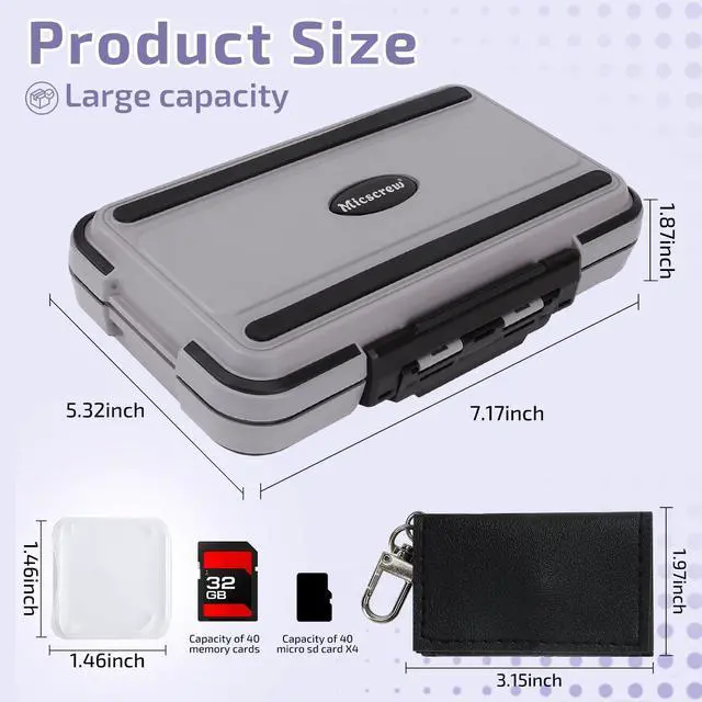 Small bag with 4 pockets: This memory card case is specially equipped with a PU leather bag with a keychain, which is not only fashionable and practical, but also can conveniently hold 4 memory cards. You can easily hang it on a keychain or backpack, convenient to carry it anywhere. With a carabiner, it can be easily fixed on a backpack or hung on a tripod for your outdoor activities. ^^ 36