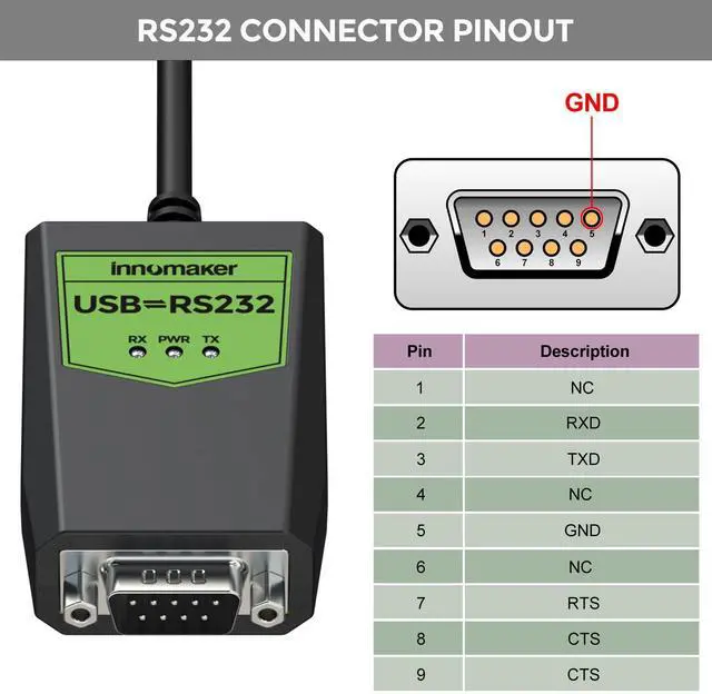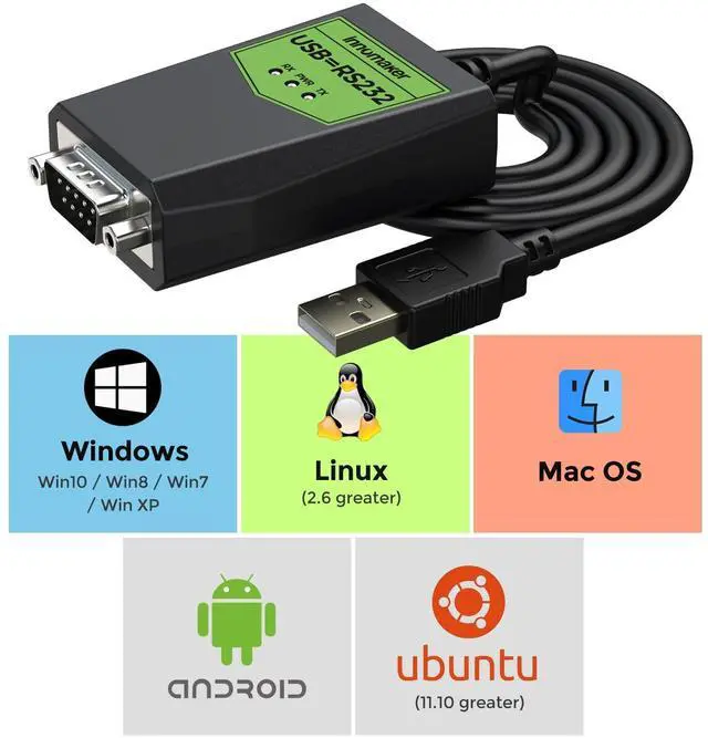 RS232 DB9 port signals: Pin 1---NCPin 2---RxDPin 3--TxDPin 4--NCPin 5---GNDPin 6---NCPin 7---RTSPin 8---CTSPin 9---CTSSupport Windows XP/7/8/10, Mac OS, Android, Linux 2.6 greater, Ubuntu 11.10 greater and Android system. It's very easy to use, Compatible with all ready-made serial port tools.